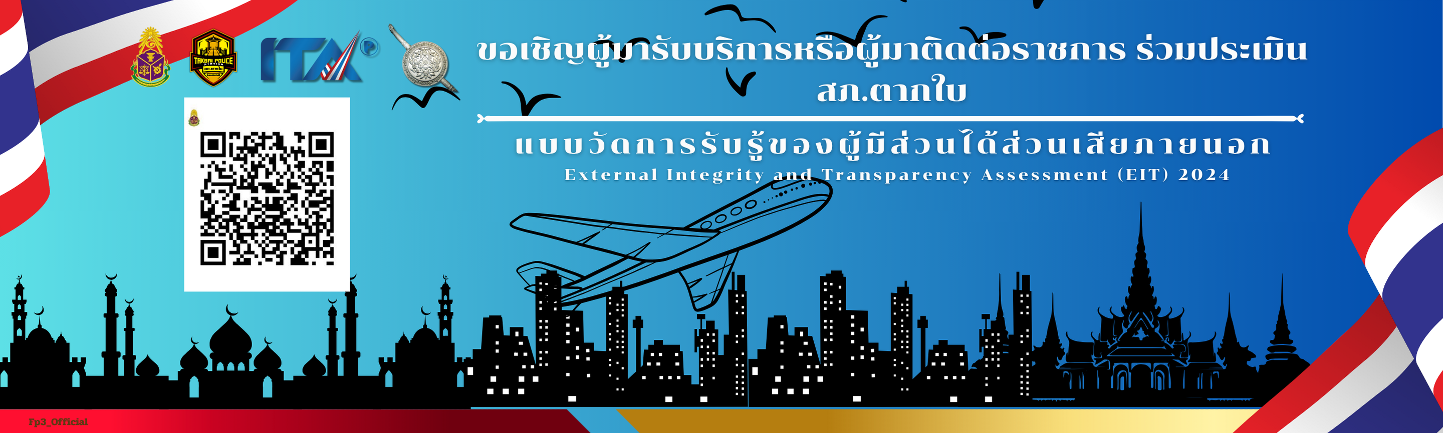 ขอเชิญผู้มารับบริการหรือผู้มาติดต่อราชการร่วมประเมิน การประเมินคุณธรรมและความโปร่งใสในการดำเนินงานของหน่วยงานภาครัฐ (Integrity and Transparency Assessment : ITA)
