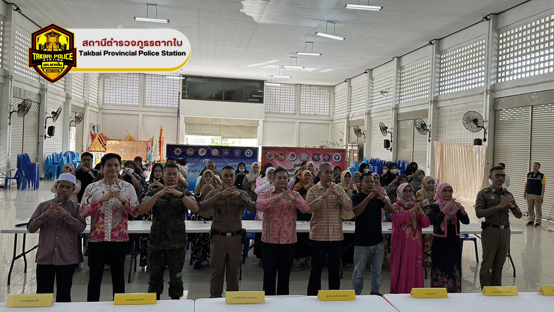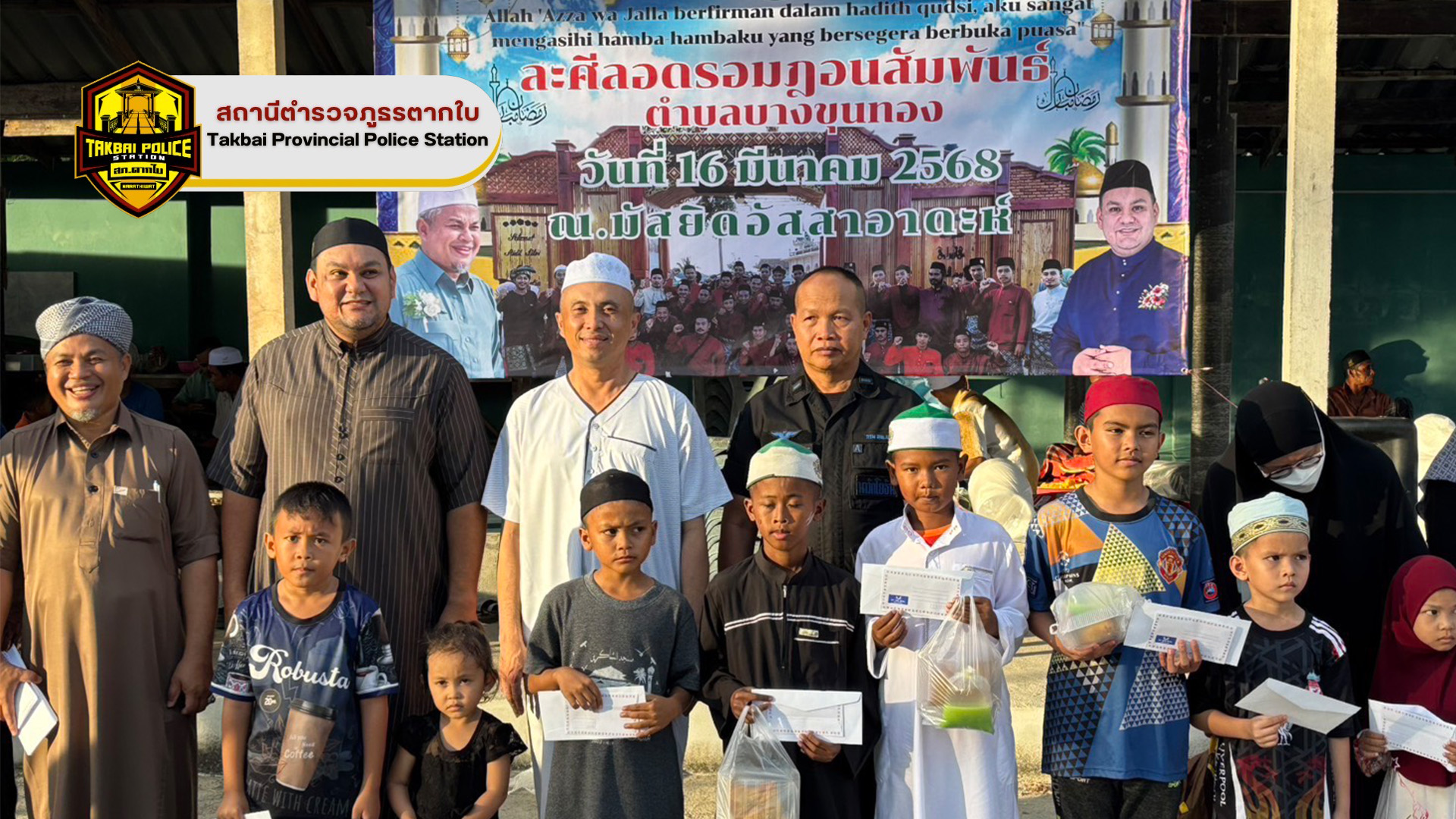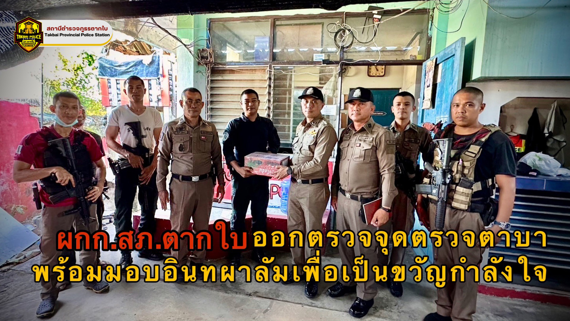 พ.ต.อ.ศุภชัช ณ พัทลุง ผกก.สภ.ตากใบ มอบหมายให้ พ.ต.ท.หญิง เบญจพร วงศ์เเย้ม สว.อก.สภ.ตากใบ เป็นตัวเเทนมอบของสนับสนุนของรางวัลให้สมาชิกกองอาสารักษาดินเเดน