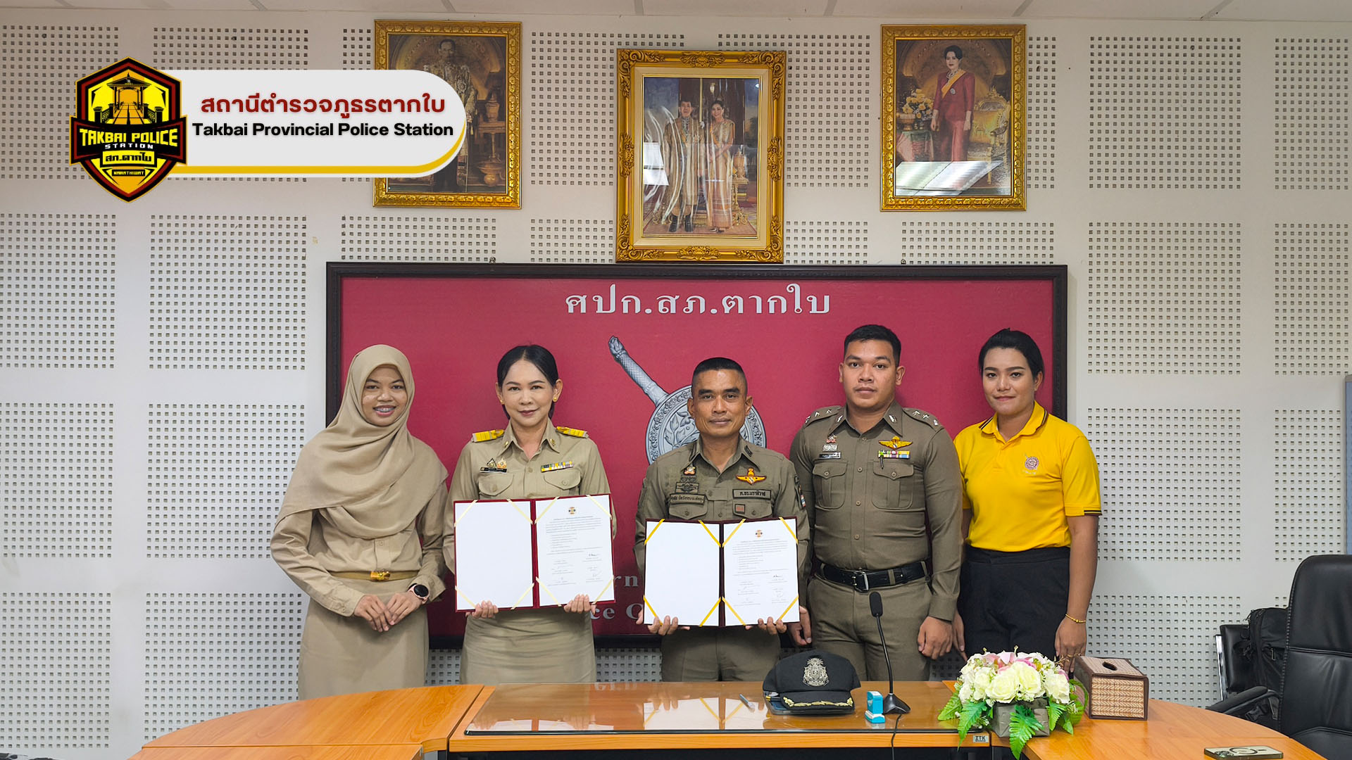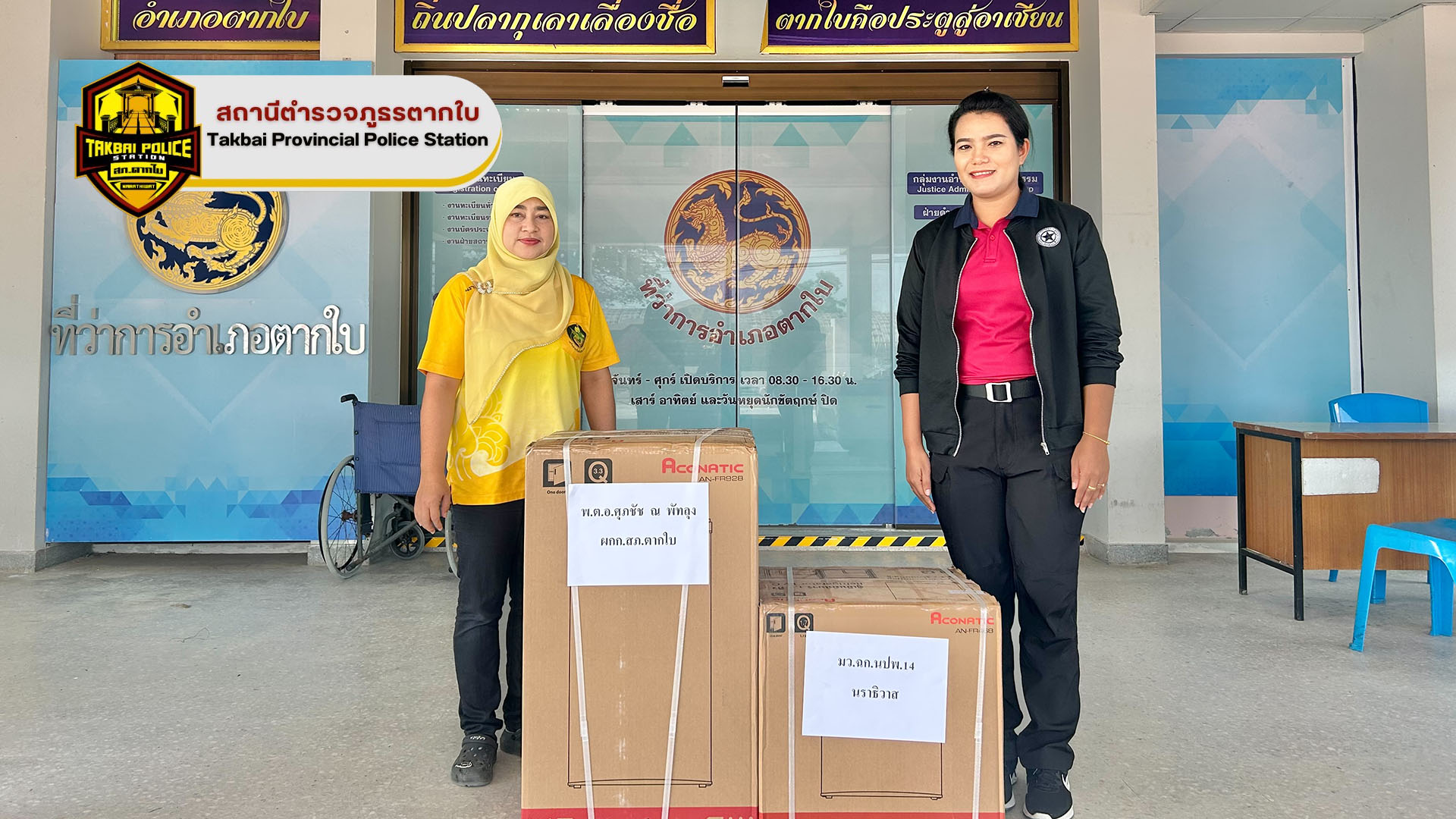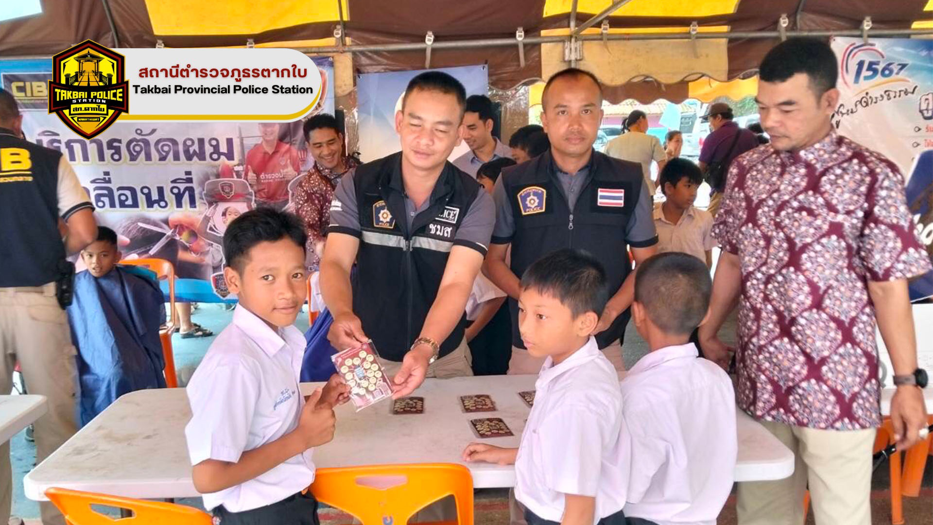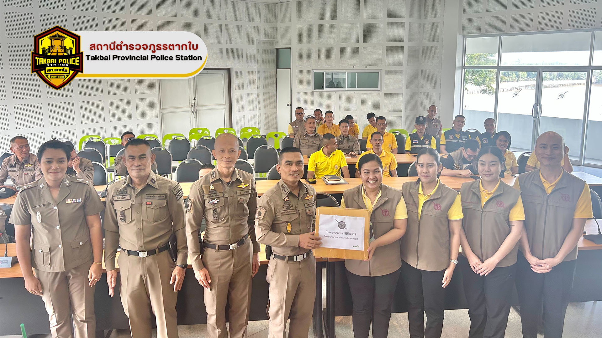 พ.ต.อ.ศุภชัช ณ พัทลุง ผกก.สภ.ตากใบ มอบหมายให้ พ.ต.ท.หญิง เบญจพร วงศ์เเย้ม สว.อก.สภ.ตากใบ เป็นตัวเเทนมอบของสนับสนุนของรางวัลให้สมาชิกกองอาสารักษาดินเเดน