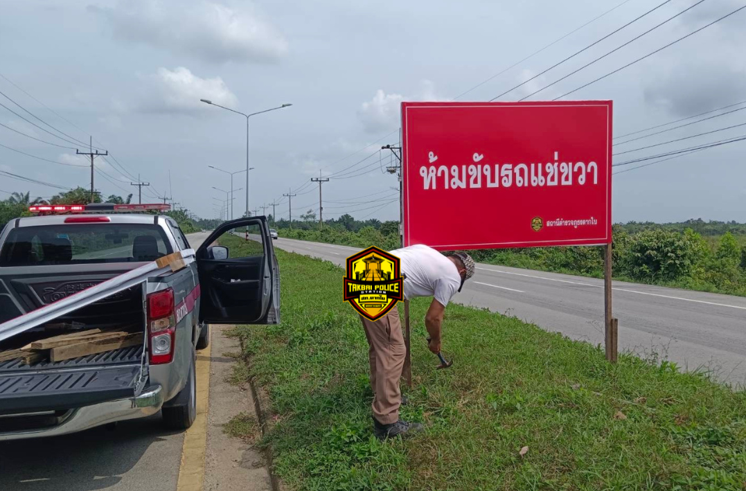 ผกก.สภ.ตากใบ ได้สั่งการข่าย จร. ทำป้ายไวนิลติดตั้งถนนเส้นหลัก ตากใบ-โกลก