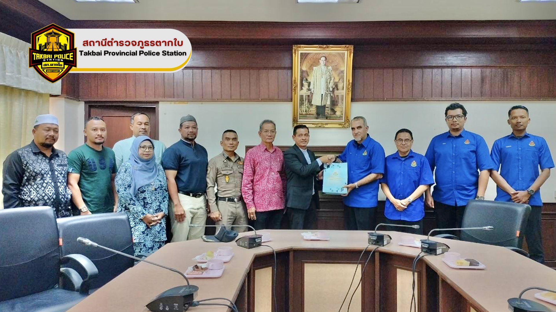 พ.ต.อ.ศุภชัช ณ พัทลุง ผกก.สภ.ตากใบ ให้การต้อนรับ Mr. Mohamed Yusoff Khan Bin Mohd Hassan ผู้อำนวยการกองตรวจคนเข้าเมืองรัฐกลันตัน และ Mr. Suhaizan Bin Abdullah หัวหน้าตรวจคนเข้าเมือง Pengkalan Kubor, Kelantan ประเทศมาเลเซีย