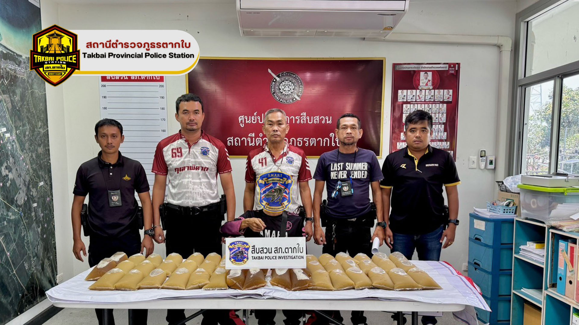 สภ.ตากใบ ลุยจับกุม! ยึดน้ำต้มพืชกระท่อม 50 ถุง น้ำหนักกว่า 33.5 กิโลกรัม