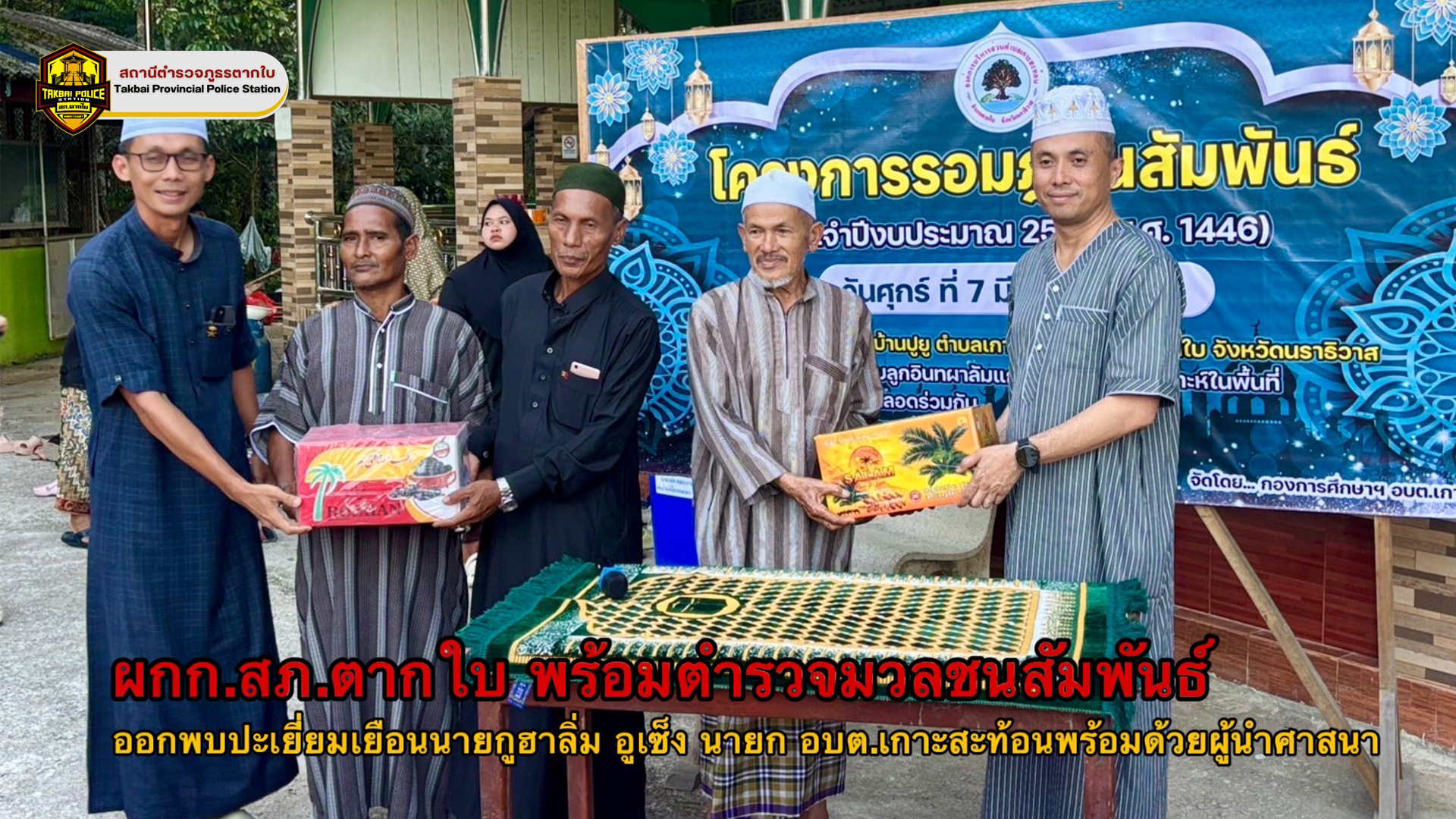 พ.ต.อ.ศุภชัช ณ พัทลุง ผกก.สภ.ตากใบ พร้อมด้วยชุดมวลชนสัมพันธ์ สภ.ตากใบ ออกพบปะเเละเยี่ยมผู้นำศาสนา ประชาชนรอบมัสยิดอำเภอตากใบ
