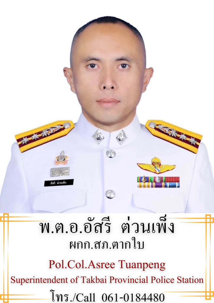 ภายใต้อำนวยการโดย พ.ต.อ.ศุภชัช ณ พัทลุง ผกก.สภ.ตากใบ พ.ต.ท.กิตติ มั่นคง รอง ผกก.ป.สภ.ตากใบ พ.ต.ท.เอก