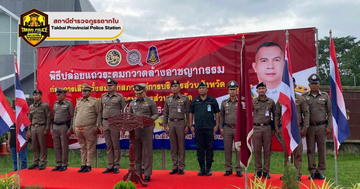 พ.ต.ท.วีระ แจ่มจันทา สวป.สภ.ตากใบ, ร.ต.อ.สมชาย หามะ รอง สวปฯ พร้อมข้าราชการตำรวจ สภ.ตากใบ ร่วมพิธีปล่อยแถวระดมกวาดล้างอาชญากรรม 23 มกราคม 2025 โดย Administrator-Faisan / รายงายผลการปฏิบัติ,งานป้องกันปราบปราม,งาน ป. (ม.ค.) วันที่ ๒๓ มกราคม ๒๕๖๘เวลา ๑๔.๓๐ น.ภายใต้การอำนวยการของ พ.ต.อ.ศุภชัช ณ พัทลุงผกก.สภ.ตากใบ พ.ต.ท.กิตติ มั่นคง รอง ผกก.ป.สภ.ตากใบมอบหมายให้ พ.ต.ท.วีระ แจ่มจันทา สวป.สภ.ตากใบ ร.ต.อ.สมชาย หามะ รอง สวป.สภ.ตากใบ พร้อมข้าราชการตำรวจ สภ.ตากใบ ร่วมพิธีปล่อยแถวระดมกวาดล้างอาชญากรรม ก่อนการเลือกตั้งสมาชิกสภาองค์การบริหาร ส่วนจังหวัดและนายกองค์การบริหารส่วนจังหวัด ณ บริเวณหน้าสวนกรมหลวงนราธิวาสราชนครินทร์ ต.บางนาค อ.เมือง จ.นราธิวาส