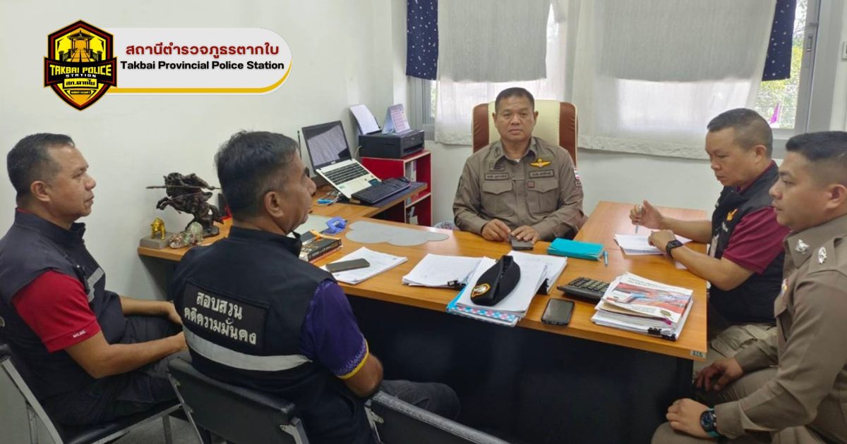 พนักงานสอบสวน สภ.ตากใบ และ พนักงานสอบสวนคดีความมั่นคง ประชุม กรณีเกิดเหตุระเบิด หน้าบ้านพักนายอำเภอตากใบ 30 ตุลาคม 2024 โดย Administrator-Faisan / รายงายผลการปฏิบัติ,งานสอบสวน,งาน สอบสวน (ต.ค.) เมื่อ 1 ต.ค. 67 เวลา 09.00 น.พ.ต.ท.ธงชัย พุกกาพันธุ์ รอง ผกก.(สอบสวน) สภ.ตากใบพร้อมด้วยพนักงานสอบสวน สภ.ตากใบ และ พนักงานสอบสวนคดีความมั่นคง ภ.จว.นราธิวาส ร่วมประชุม กรณีเกิดเหตุระเบิด หน้าบ้านพักนายอำเภอตากใบ เมื่อวันที่ 29 ก.ย. 67