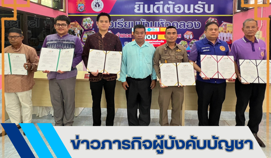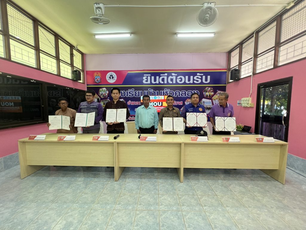 บันทึกลงนามข้อตกลง MOU ภาคีเครือข่ายสถานศึกษาสีขาวโรงเรียนบ้านหัวคลอง 15 กุมภาพันธ์ 2024 โดย Administrator-Faisan / ข่าวภารกิจผู้บังคับบัญชา วันที่ 15 กุมภาพันธ์ พ.ศ.2567เวลา 13.00-14.00 น.นายกฤษฎา สุขสบาย ปลัดอาวุโสอำเภอตากใบพ.ต.อ.ศุภชัช ณ พัทลุง ผกก.สภ.ตากใบพ.ต.ต.ปรีดี เจ๊ะมะยูโซ๊ะ สวป.(ชส.) สภ.ตากใบ พร้อมชุดตำรวจมวลชนสัมพันธ์ สภ.ตากใบ บันทึกลงนามข้อตกลง MOU ภาคีเครือข่ายสถานศึกษาสีขาวโรงเรียนบ้านหัวคลอง มีนโยบายขับเคลื่อนการป้องกันเเละแก้ไขปัญหายาเสพติดในนักเรียนและเยาวชน โครงการสถานศึกษาสีขาวปลอดยาเสพติดและอบายมุข เพื่อประสานการป้องกัน แก้ปัญหายาเสพติด ตลอดจนเป็นการส่งเสริมนโยบายของกระทรวงศึกษาธิการ ณ โรงเรียนบ้านหัวคลอง