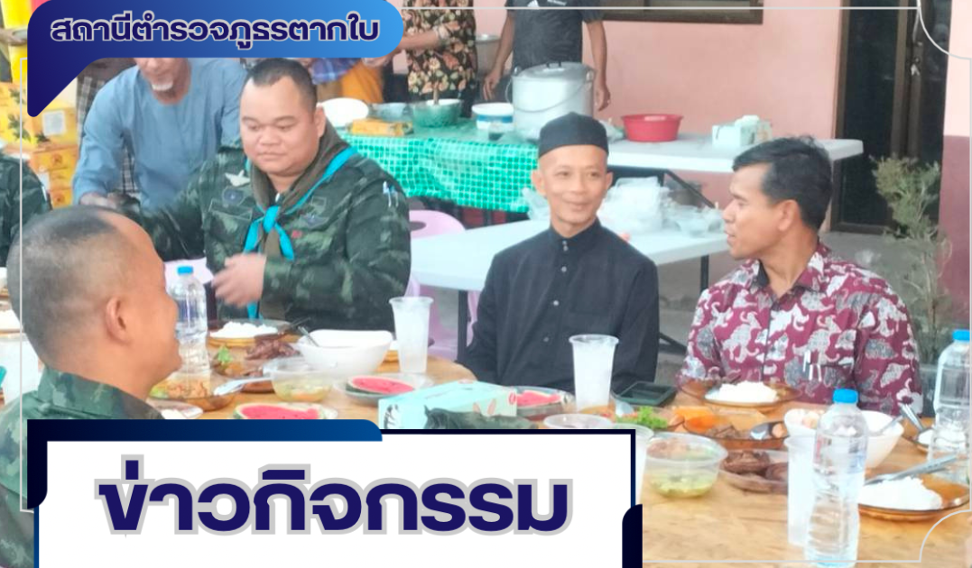 รอง ผกก.สส.ฯ ร่วมกิจกรรมละศีลอดในเดือนรอมฎอน โดยมี พล.ต.เฉลิมพร ขำเขียว ผบ.พล.ร.15 ประธานในพิธี 23 มีนาคม 2024 โดย Administrator-Faisan / ข่าวประชาสัมพันธ์,ข่าวกิจกรรม วันที่ 22 มีนาคม พ.ศ.2567เวลา 18.30 น.พ.ต.อ.ศุภชัช ณ พัทลุงผกก.สภ.ตากใบมอบหมายให้พ.ต.ท.จารุกิตติ์ ศรีเดช รอง ผกก.สส.สภ.ตากใบ พร้อมชุดมวลชนสัมพันธ์ สภ.ตากใบ ร่วมกิจกรรมละศีลอดในเดือนรอมฎอน โดยมี พล.ต.เฉลิมพร ขำเขียว ผบ.พล.ร.15 ประธานในพิธี และมีหน่วยงานราชการต่างๆ ประชาชนบ้านตาบา ร่วมกิจกรรมณ มัสยิดบ้านตาบา อ.ตากใบ จว.นราธิวาส
