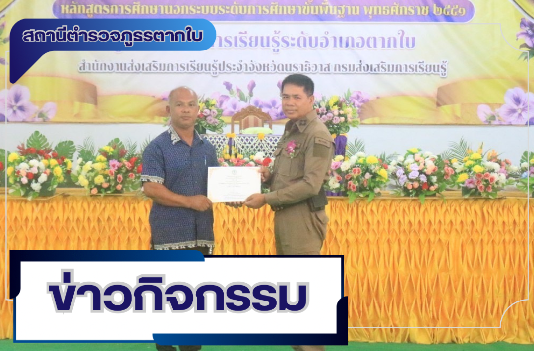 หัวหน้าจุดตรวจไพรวัน เข้าร่วมเป็นเกียรติโครงการสงเสริมการเรียนรู้และพัฒนาศักยภาพ นักศึกษา สกร.ระดับอำเภอตากใบ และมอบประกาศนียบัตรให้กับนักศึกษาสำเร็จการศึกษา ภาคเรียน 2/2566