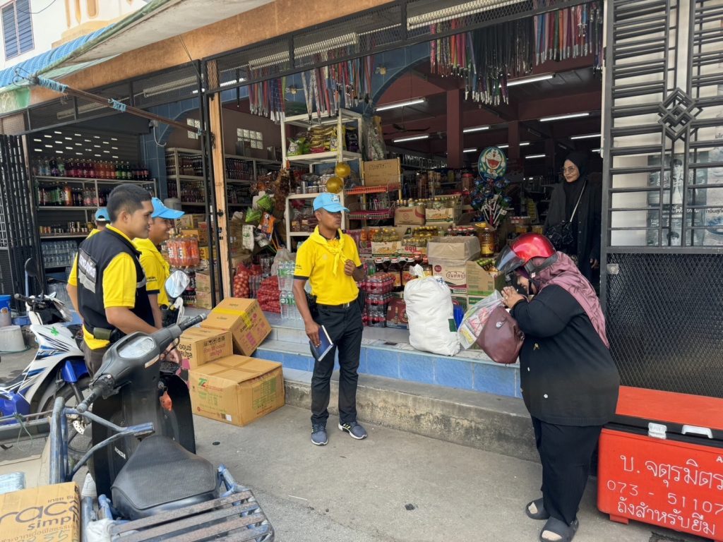 ตำรวจชุดมวลชนสัมพันธ์ สภ.ตากใบ ออกพบปะเยี่ยมเยียนประชาชน ร้านสะดวกซื้อ พูดคุยแลกเปลี่ยนข้อมูลข่าวสารในพื้นที่ พร้อมทั้งประชาสัมพันธ์ห้ามจำหน่ายประทัดดอกไม้เพลิงในช่วงห้วงเดือนรอมฎอน 1 เมษายน 2024 โดย Administrator-Faisan / ข่าวประชาสัมพันธ์,ข่าวกิจกรรม วันที่ 1 เมษายน พ.ศ.2567เวลา 09.30น.พ.ต.อ.ศุภชัช ณ พัทลุงผกก.สภ.ตากใบพ.ต.ท.กิตติ มั่นคงรอง ผกก.ป.สภ.ตากใบมอบหมายให้พ.ต.ต.ปรีดี เจ๊ะมะยูโซ๊ะ สวป.(ชส.) สภ.ตากใบ พร้อมชุดมวลชนสัมพันธ์ สภ.ตากใบ ออกพบปะเยี่ยมเยียนประชาชน ร้านสะดวกซื้อ พูดคุยแลกเปลี่ยนข้อมูลข่าวสารในพื้นที่ พร้อมทั้งประชาสัมพันธ์ห้ามจำหน่ายประทัดดอกไม้เพลิงในช่วงห้วงเดือนรอมฎอน และการรณรงค์ฝุ่นควันค่า pm2.5ณ เขตรับผิดชอบ สภ.ตากใบ อ.ตากใบ จว.นราธิวาส