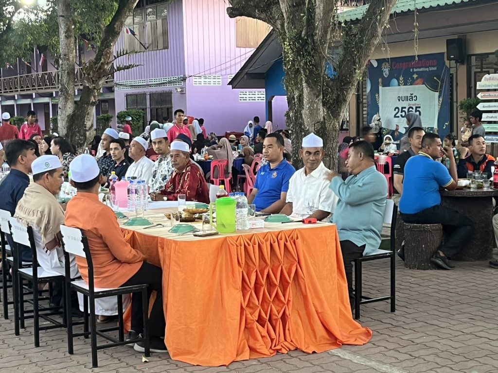 พบปะผู้อำนวยการ คณะครูรร.บ้านหัวคลอง และผู้นำชุมชน พูดคุยแลกเปลี่ยนข้อมูลข่าวสารในพื้นที่ พร้อมร่วมกิจกรรมละศีลอดกับผู้นำศาสนาและประชาชน ณ โรงเรียนบ้านหัวคลอง 23 มีนาคม 2024 โดย Administrator-Faisan / ข่าวประชาสัมพันธ์,ข่าวกิจกรรม วันที่ 22 มีนาคม พ.ศ.2567เวลา 18.00-19.30 น. ภายใต้การอำนวยการของพ.ต.อ.ศุภชัช ณ พัทลุงผกก.สภ.ตากใบมอบหมายให้พ.ต.ทำ.กิตติ มั่นคง รอง ผกก.ป.สภ.ตากใบพ.ต.ต.ปรีดี เจ๊ะมะยูโซ๊ะสวป.(ชส).สภ.ตากใบ พบปะผู้อำนวยการ คณะครูรร.บ้านหัวคลอง และผู้นำชุมชน พูดคุยแลกเปลี่ยนข้อมูลข่าวสารในพื้นที่ พร้อมร่วมกิจกรรมละศีลอดกับผู้นำศาสนาและประชาชน เพื่อกระชับสัมพันธไมตรี โดยมีว่าที่ร้อยตรี จิรัสย์ ศิริวัลลภ นายอำเภอตากใบ เป็นประธานในพิธี ณ รร.บ้านหัวคลอง ม.6 ต.เจ๊ะเห อ.ตากใบ จ.นราธิวาส