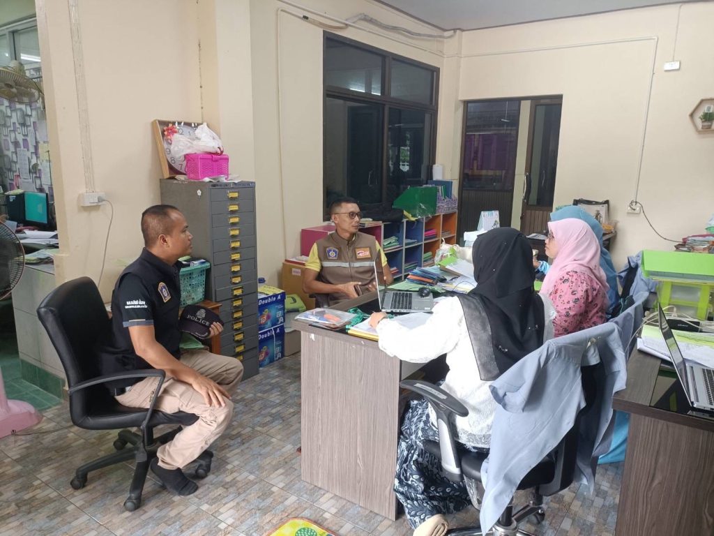 ออกพบปะเยี่ยมเยียน เจ้าหน้าที่ รพ.สต.บ้านศาลาใหม่ เพื่อประสานการปฏิบัติตามโครงการชุมชนบำบัด ในพื้นที่ระบาดยาเสพติด 5 กรกฎาคม 2024 โดย Administrator-Faisan / ข่าวประชาสัมพันธ์,ข่าวกิจกรรม วันที่ 5 กรกฎาคม พ.ศ.2567 เวลา 10.00น.เป็นต้นไปพ.ต.อ.ศุภชัช ณ พัทลุง ผกก.สภ.ตากใบพ.ต.ท.กิตติ มั่นคง รอง ผกก.ป.สภ.ตากใบมอบหมายให้พ.ต.ต.ปรีดี เจ๊ะมะยูโซ๊ะ สวป.(ชส.) สภ.ตากใบ พร้อมชุด ปฏิบัติการชุมชนยั่งยืน สภ.ตากใบ ออกพบปะเยี่ยมเยียน เจ้าหน้าที่ รพ.สต.บ้านศาลาใหม่ เพื่อประสานการปฏิบัติตามโครงการชุมชนบำบัด ในพื้นที่ระบาดยาเสพติด ตามนโยบายเร่งด่วนของรัฐบาล และเป็นการสร้างความสัมพันธ์ที่ดีระหว่างหน่วยงานณ รพ.สต.บ้านศาลาใหม่ ต.ศาลาใหม่ อ.ตากใบ จว.นราธิวาส