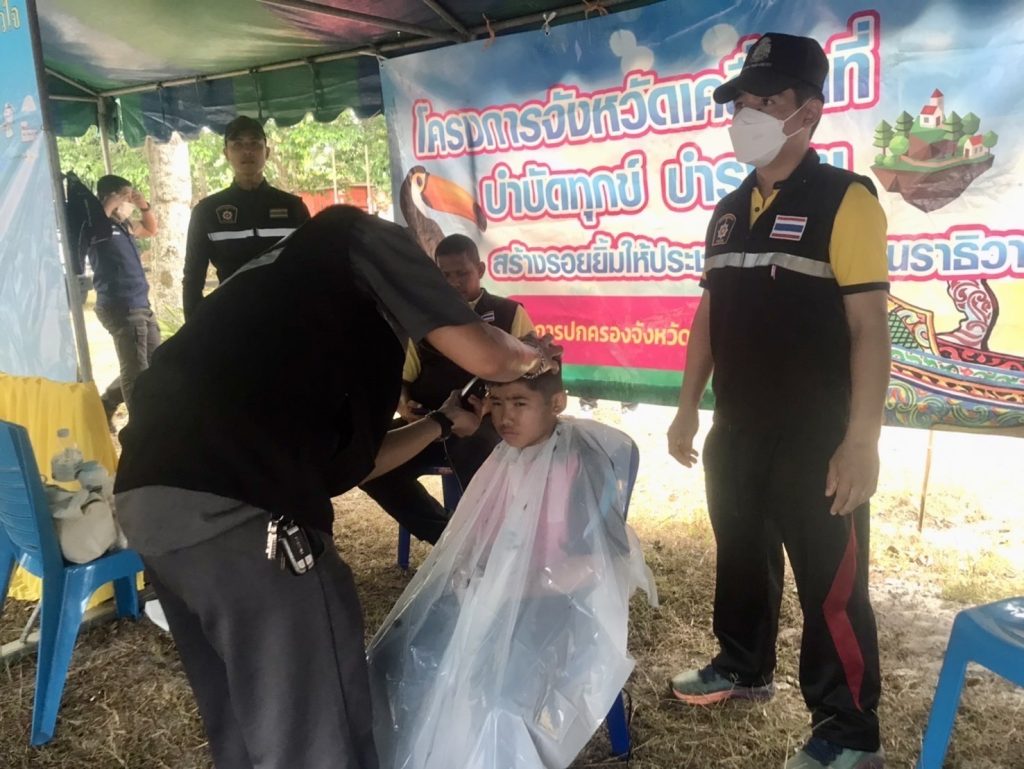 ผกก.สภ.ตากใบ พร้อมชุดมวลชนสัมพันธ์ บริการตัดผมให้เด็กนักเรียน และแจกไอศครีมถัง (รสกะทิ) 8 มีนาคม 2024 โดย Administrator-Faisan / ข่าวประชาสัมพันธ์,ข่าวกิจกรรม วันที่ 8 มีนาคม พ.ศ.2567เวลา 09.00 – 12.00 น.พ.ต.อ.ศุภชัช ณ พัทลุงผกก.สภ.ตากใบพ.ต.ท.กิตติ มั่นคงรอง ผกก.ป.สภ.ตากใบว่าที่ พ.ต.ต.ปรีดี เจ๊ะมะยูโซ๊ะสวป.(ชส.) สภ.ตากใบพร้อมชุดมวลชนสัมพันธ์ สภ.ตากใบ ร่วมให้การต้อนรับ ว่าที่ร้อยตรีตระกูล โทธรรม ผู้ว่าราชการจังหวัดนราธิวาส พร้อมหัวหน้าส่วนราชการจังหวัดนราธิวาส ส่วนราชการอำเภอตากใบ ร่วมกิจกรรมโครงการจังหวัดเคลื่อนที่ บำบัดทุกข์ บำรุงสุข สร้างรอยยิ้มให้ประชาชน ประจำปีงบประมาณ พ.ศ.2567 พร้อมบริการตัดผมให้เด็กนักเรียน และแจกไอศครีมถัง (รสกะทิ)ณ โรงเรียนวัดทรายขาว ต.ไพรวัน อ.ตากใบ จว.นราธิวาส