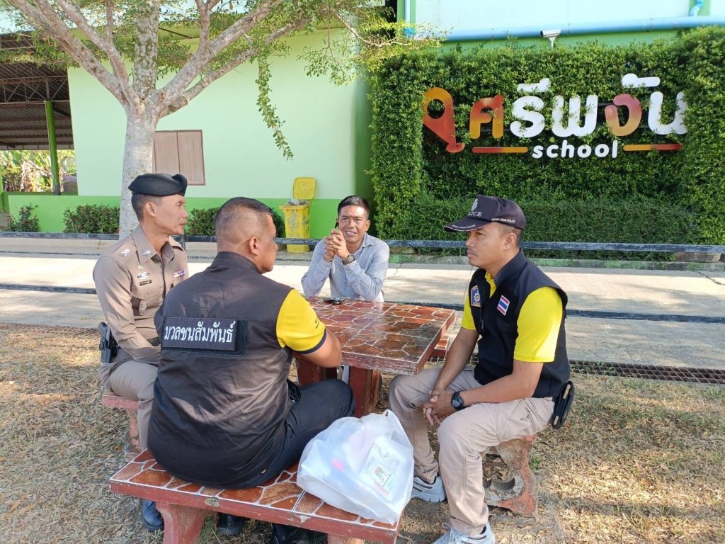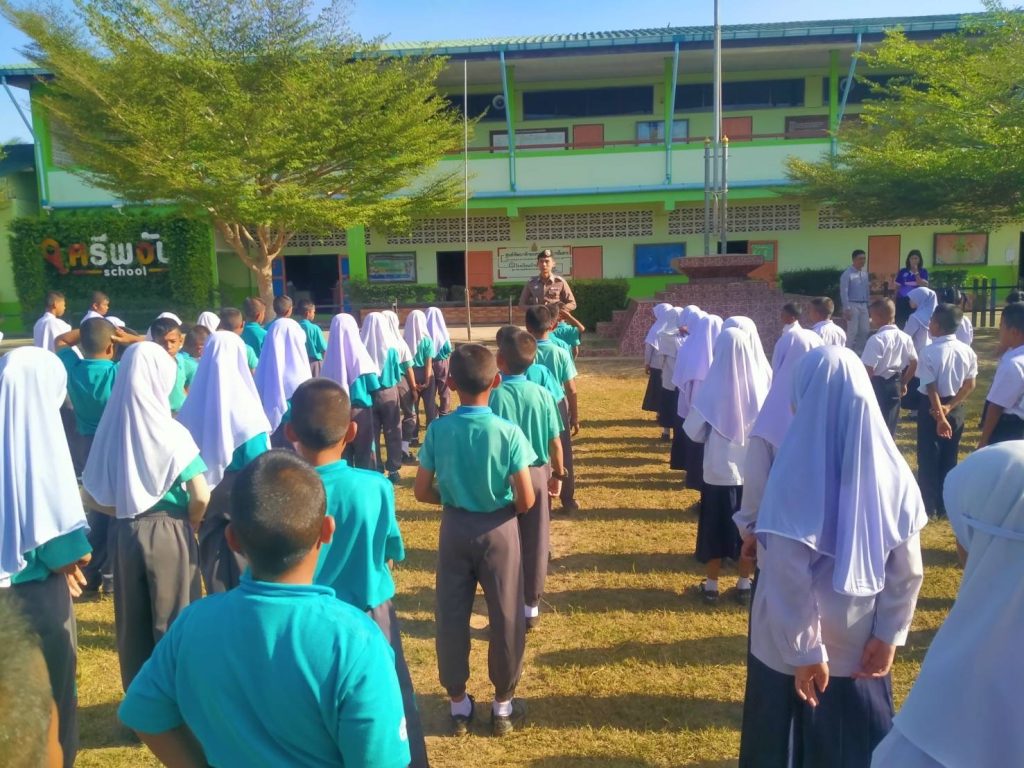 ออกพบปะ ผู้อำนวยการโรงเรียนบ้านศรีพงัน คณะครูและนักเรียน ใน”โครงการ ครู 5 นาที” 27 กุมภาพันธ์ 2024 โดย Administrator-Faisan / ข่าวประชาสัมพันธ์,ข่าวกิจกรรม วันที่ 27 กุมภาพันธ์ พ.ศ.2567เวลา 08.00 น. เป็นต้นไปภายใต้อำนวยการของพ.ต.อ.ศุภชัช ณ พัทลุงผกก.สภ.ตากใบพ.ต.ท.กิตติ มั่นคงรอง ผกก.ป.สภ.ตากใบมอบหมายให้ ว่าที่ พ.ต.ต.ปรีดี เจ๊ะมะยูโซ๊ะ สวป.(ชส.) สภ.ตากใบ พร้อมชุดมวลชนสัมพันธ์ สภ.ตากใบ ออกพบปะ ผู้อำนวยการโรงเรียน, คณะครูและนักเรียน ใน”โครงการ ครู 5 นาที” แจ้งเตือนไม่ให้นักเรียนไปยุ่งเกี่ยวกับยาเสพติด บุหรี่ไฟฟ้า และให้ระวังเรื่องการใช้สื่อโซเชียล ให้มีความระมัดระวัง และไม่ตกเป็นเหยื่อของมิจฉาชีพณ โรงเรียนบ้านศรีพงัน ต.เกาะสะท้อน อ.ตากใบ จ.นราธิวาส