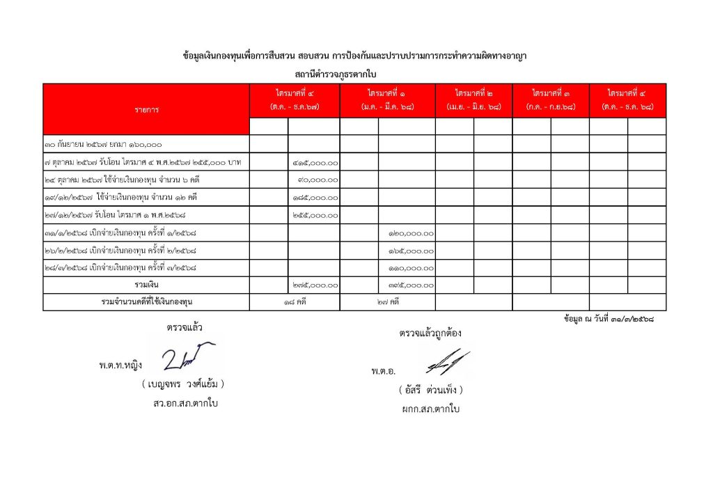 O13 ข้อมูลเงินกองทุนเพื่อการสืบสวนและสอบสวนป้องกันปราบปรามความผิดทางอาญา