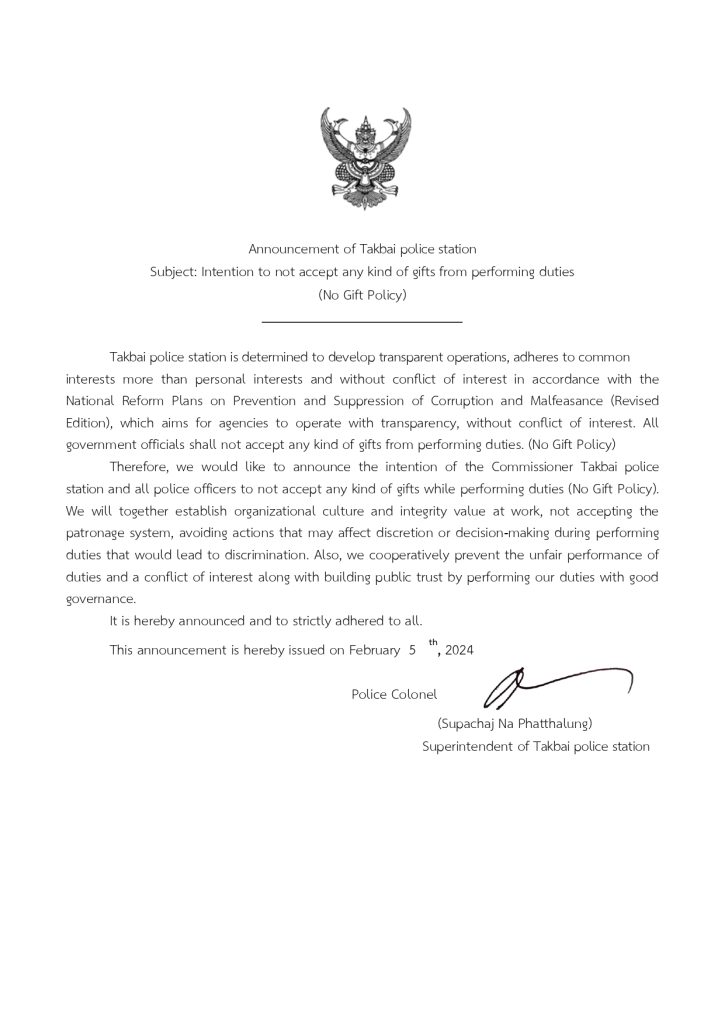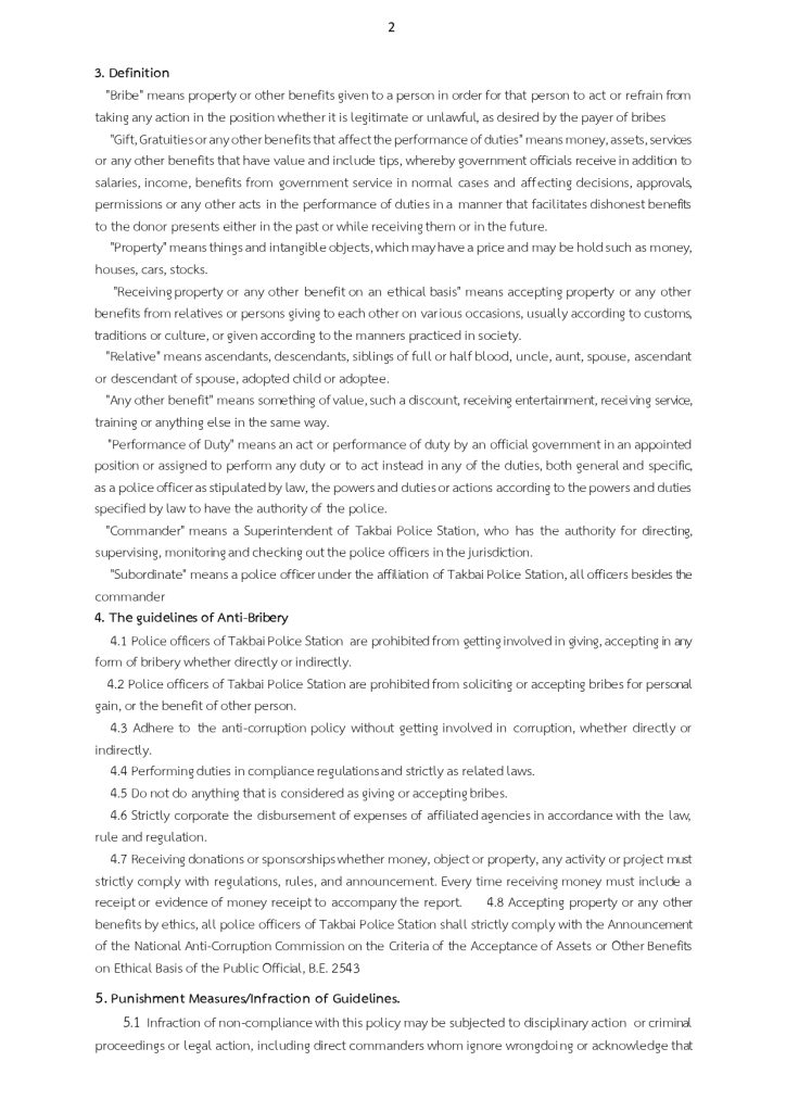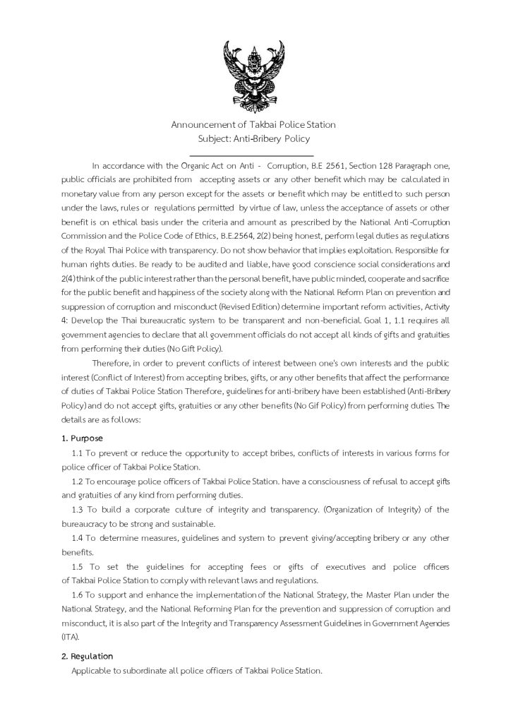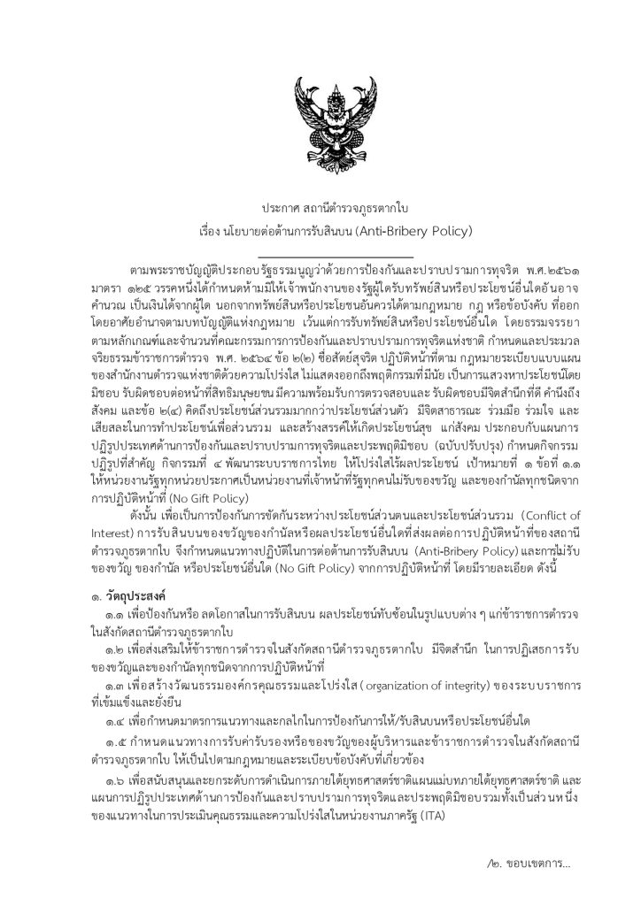 O18 ประกาศนโยบายต่อต้านการรับสินบน (Anti-Bribery Policy)