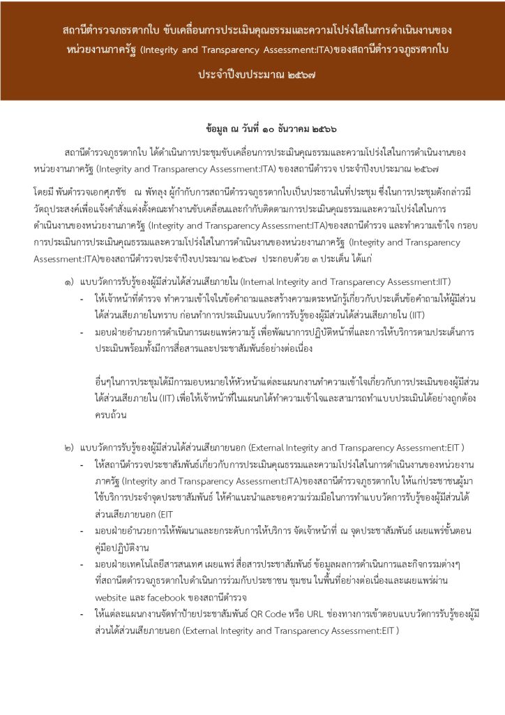 กิจกรรมขับเคลื่อนการประเมินคุณธรรมและความโปร่งใสในการดำเนินงานของหน่วยงานภาครัฐ