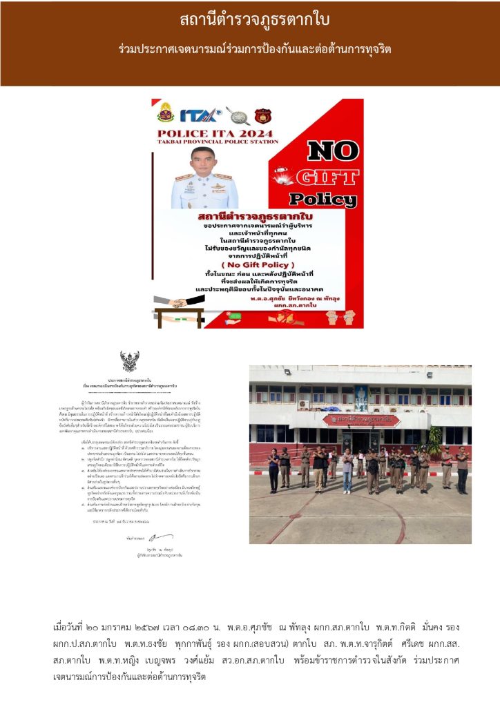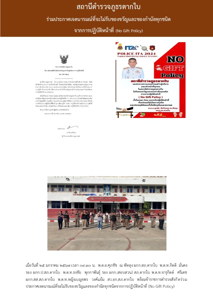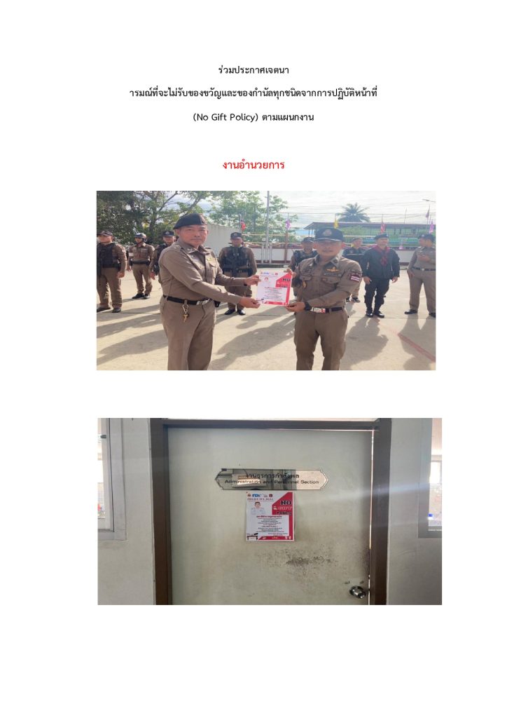 กิจกรรมร่วมประกาศเจตนารมณ์ที่จะไม่รับของขวัญแลัของกำนัลทุกชนิดจากการปฏิบัติหน้าที่ (No Gift Policy)