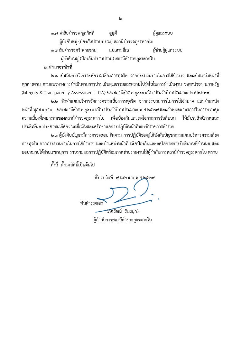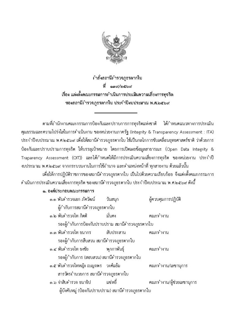คำสั่งแต่งตั้งคณะกรรมกาารประเมินความเสี่ยง สภ.ตากใบ
