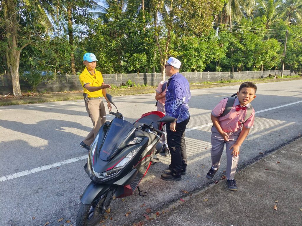 พ.ต.ต.ปรีดี เจ๊ะมะยูโซ๊ะ สวป.ชส.สภ.ตากใบ กิจกรรมจิตอาสาจารจรหน้า ร.ร.เพื่ออำนวยความสะดวก ให้แก่ผู้ปกครองที่มาส่งบุตรหลานหน้าโรงเรียนตอนเช้า 20 มกราคม 2025 โดย Administrator-Faisan / ข่าวประชาสัมพันธ์,ข่าวกิจกรรม,รายงายผลการปฏิบัติ,งานป้องกันปราบปราม,งาน ป. (ม.ค.) วันที่ 20 มกราคม 2568เวลา 07.30 น.ภายใต้การอำนวยการของ พ.ต.อ.ศุภชัช ณ พัทลุงผกก.สภ.ตากใบพ.ต.ท.กิตติ มั่นคงรอง ผกก.ป.สภ.ตากใบมอบหมายให้ พ.ต.ต.ปรีดี เจ๊ะมะยูโซ๊ะ สว.(ชส)สภ.ตากใบ พร้อมชุด ตชส.สภ.ตากใบ ทำกิจกรรมจิตอาสาจารจรหน้า ร.ร.เพื่ออำนวยความสะดวก ให้แก่ผู้ปกครองที่มาส่งบุตรหลานหน้าโรงเรียนตอนเช้าณ หน้า ร.ร.อนุบาลสมถวิล อ.ตากใบ จ.นราธิวาส