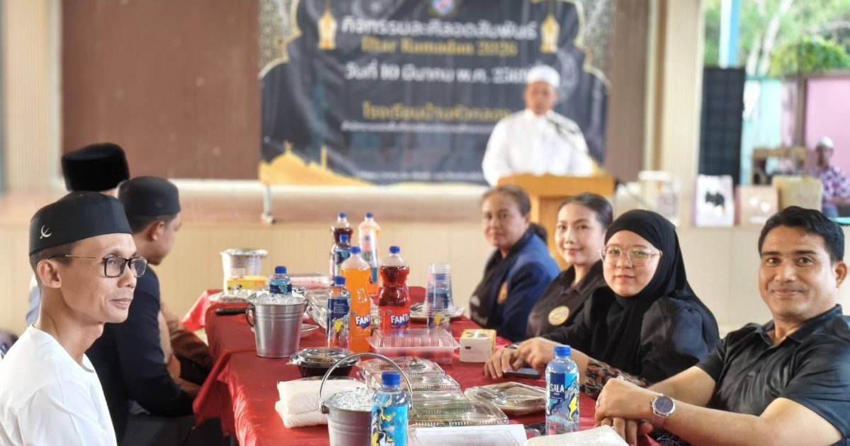 พ.ต.ท.ปรีดี เจ๊ะมะยูโซ๊ะ สวป.(ชส.)สภ.ตากใบพร้อมชุด ตชส.สภ.ตากใบ ร่วมกิจกรรมละศีลอดสัมพันธ์ ในห่วงเดือนรอมฏอน ณ โรงเรียนบ้านหัวคลอง อ.ตากใบ จว.นราธิวาส 10 มีนาคม 2026 โดย Administrator-Faisan / ข่าวภารกิจผู้บังคับบัญชา,รายงายผลการปฏิบัติ,งานป้องกันปราบปราม,งาน ป. (มี.ค.),รายงายผลการปฏิบัติ,งานชุมชนสัมพันธ์,ชมส. (มี.ค.) วันที่ 10 มีนาคม 2569เวลา 17.30 น.ภายใต้อำนวยการของพ.ต.อ.ภัควัฒน์ วันสนุก ผกก.สภ.ตากใบ มอบหมายให้ พ.ต.ท.ปรีดี เจ๊ะมะยูโซ๊ะ สวป.(ชส.)สภ.ตากใบพร้อมชุด ตชส.สภ.ตากใบ ร่วมกิจกรรมละศีลอดสัมพันธ์ ในห่วงเดือนรอมฏอน ณ โรงเรียนบ้านหัวคลอง อ.ตากใบ จว.นราธิวาส