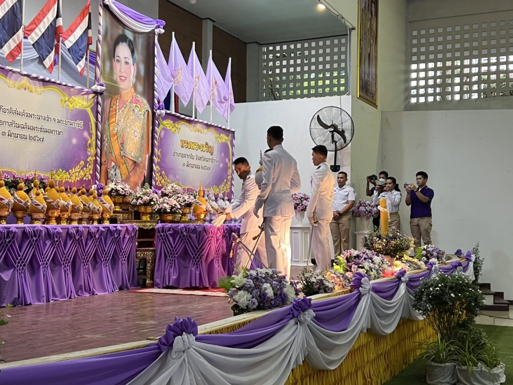 ผกก.ฯ และข้าราชการตำรวจ สภ.ตากใบ ร่วมพิธีวางพานพุ่มดอกไม้ถวายสักการะและพิธีจุดเทียนถวายพระพรชัยมงคล เนื่องในโอกาสเฉลิมพระชนมพรรษา สมเด็จพระนางเจ้าสุทิดาฯ 3 มิถุนายน 2024 โดย Administrator-Faisan / ข่าวภารกิจผู้บังคับบัญชา วันที่ 3 มิถุนายน พ.ศ.2567 เวลา 17.30น. พ.ต.อ.ศุภชัช ณ พัทลุง ผกก.สภ.ตากใบ ร.ต.อ.วัฒนา ธุรารัตน์ รอง สว.(สอบสวน)สภ.ตากใบร.ต.ท.คมกริช วงศ์สวัสดิ์ ผบ.มว.ฉก.นปพ.นธ.14 พร้อมหัวหน้าส่วนราชการและข้าราชการตำรวจ สภ.ตากใบ ร่วมพิธีวางพานพุ่มดอกไม้และถวายสักการะ และพิธีจุดเทียนถวายพระพรชัยมงคล เนื่องในโอกาสเฉลิมพระชนมพรรษา สมเด็จพระนางเจ้าสุทิดา พัชรสุธาพิมลลักษณ พระบรมราชินี 3 มิถุนายน 2567 โดยมี ว่าที่ร้อยตรี จิรัสย์ ศิริวัลลภ นายอำเภอตากใบ เป็นประธานในพิธีณ หอประชุมอำเภอตากใบ