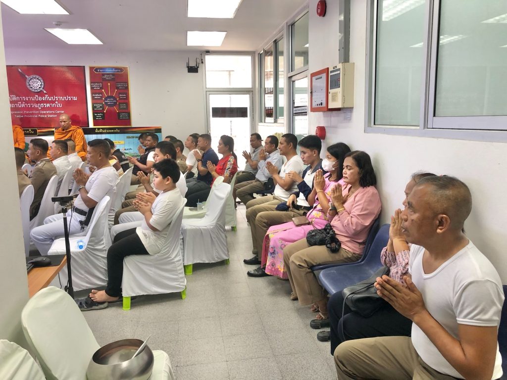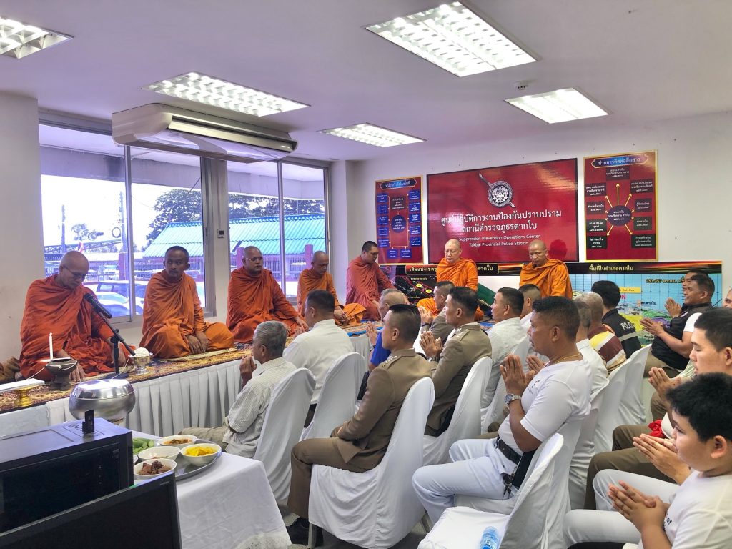 ทำบุญเพลพระ วันตำรวจ 17 ตุลาคม 2567 17 ตุลาคม 2024 โดย Administrator-Faisan / ข่าวประชาสัมพันธ์,ข่าวกิจกรรม,รายงายผลการปฏิบัติ,งานป้องกันปราบปราม,งาน ป. (ต.ค.) วันที่ 17 ตุลาคม พ.ศ.2567 เวลา 07.00-11.00 น. พ.ต.อ.ศุภชัช ณ พัทลุง ผกก.สภ.ตากใบพ.ต.ท.ธงชัย พุกกาพันธุ์ รอง ผกก.(สอบสวน)สภ.ตากใบ พ.ต.ท.วชิระ ฉั่วประเสริฐ สว.สส.สภ.ตากใบ และข้าราชการตำรวจ สภ.ตากใบที่นับถือศาสนาพุทธเข้าร่วมพิธีเละร่วมทำบุญเลี้ยงเพลพระ ณ ห้อง ศปก.ป.สภ.ตากใบ อ.ตากใบ จ.นราธิวาส