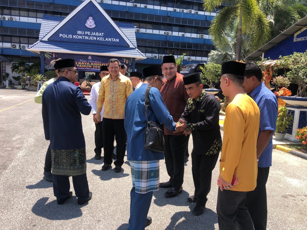 ผู้กำกับและรองผู้กำกับการสถานีตำรวจภูธรตากใบ ร่วมกิจกรรม Hari Raya Aidilfitri PDRM Kontinjen Kalantan 2024 6 พฤษภาคม 2024 โดย Administrator-Faisan / ข่าวภารกิจผู้บังคับบัญชา วันนี้ 6 พฤษภาคม พ.ศ.2567 เวลา 11.00-14.00 น. พ.ต.อ.ศุภชัช ณ พัทลุง ผกก.สภ.ตากใบพ.ต.ท.จารุกิตติ์ ศรีเดช รอง ผกก.สส.สภ.ตากใบพ.ต.ท.กิตติ มั่นคง รอง ผกก.ป.สภ.ตากใบ ร่วมกิจกรรม Hari Raya Aidilfitri PDRM Kontinjen Kalantan 2024 พบปะเจ้าหน้าที่ประเทศมาเลเซีย เพื่อกระชับความสัมพันธ์ที่ดีระหว่างกัน