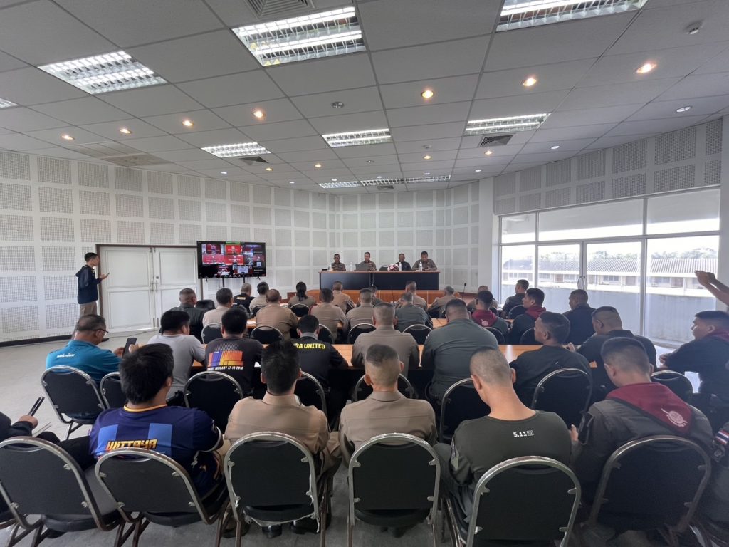 พ.ต.อ.ภัควัฒน์ วันสนุก ผกก.สภ.ตากใบ พร้อมข้าราชการตำรวจสังกัด สภ.ตากใบ ร่วมประชุมประจำเดือน มกราคม 2569 26 มกราคม 2026 โดย Administrator-Faisan / ข่าวภารกิจผู้บังคับบัญชา,รายงายผลการปฏิบัติ,งานป้องกันปราบปราม,งาน ป. (ม.ค.),รายงายผลการปฏิบัติ,งานสืบสวน,งาน สส. (ม.ค.),รายงายผลการปฏิบัติ,งานสอบสวน,งาน สอบสวน (ม.ค.),รายงายผลการปฏิบัติ,งานอำนวยการ,งาน อก. (ม.ค.),รายงายผลการปฏิบัติ,งานจราจร,จราจร (ม.ค.),รายงายผลการปฏิบัติ,งานชุมชนสัมพันธ์,ชมส. (ม.ค.) วันที่ ๒๖ มกราคม พ.ศ.๒๕๖๙เวลา ๐๙:๐๐น. • พ.ต.อ.ภัควัฒน์ วันสนุกผกก.สภ.ตากใบ (ตากใบ๑)พ.ต.ท.กิตติ มั่นคงรอง ผกก.(ป.)สภ.ตากใบ (ตากใบ๒)พ.ต.ท.ธงชัย พุกกาพันธ์รอง ผกก.(สอบสวน) สภ.ตากใบ (ตากใบ๓)พ.ต.ท.ธนากร สับประสานรอง.ผกก.(สส) สภ.ตากใบ(ตากใบ๔) 🔶พร้อมข้าราชการตำรวจสังกัด สภ.ตากใบ ร่วมประชุมประจำเดือน มกราคม ๒๕๖๙ สรุปภาพรวมการปฏิบัติหน้าที่ของแต่ละสายงาน ในห้วงรอบเดือนที่ผ่านมา ชี้แจงการปฏิบัติในการคุมหน่วยเลือกตั้งและมอบนโยบายในการปฏิบัติหน้าที่ในห้วงเดือนถัดไป 📍ณ ห้องประชุม ชั้น ๔ สภ.ตากใบ
